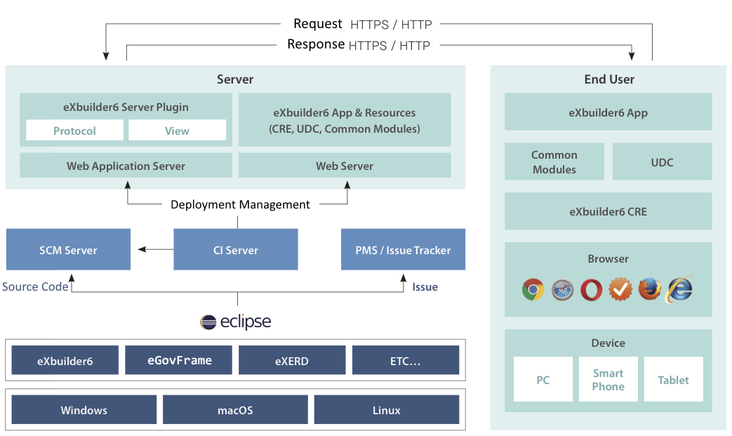| All application codes are transparent so that developers can easily check and debug all codes, thus reducing concern about understanding and learning the new technology and product. | Completely integrated with Eclipse allowing 100% utilization of Eclipse and easy development of application without additional training. | Provides perfect and rapid auto content completion for syntax and API and intelligent content auto completion by inferring intention of developers. | Supports powerful development methodology and configuration for communized and standardized support. (UDC, Embedded App, common module and standard web policy) |