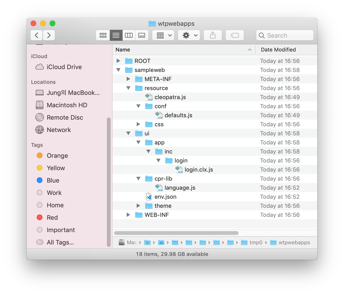 - When a dynamic web project is deployed to the sampleweb path, it is deployed to the web application server in the structure shown in <Figure 6> according to the deployment assembly.
