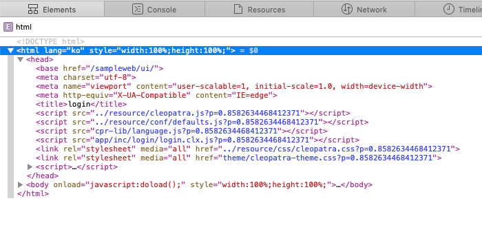 When deployed like this, the path of the "../resource/cleopatra.js" file described in <Figure 7> is "http(s)://<<address>>/sampleweb" based on the "sampleweb/ui/" address. /resource/cleopatra.js" and when connecting to that address, you should be able to access the "cleopatra.js" file.