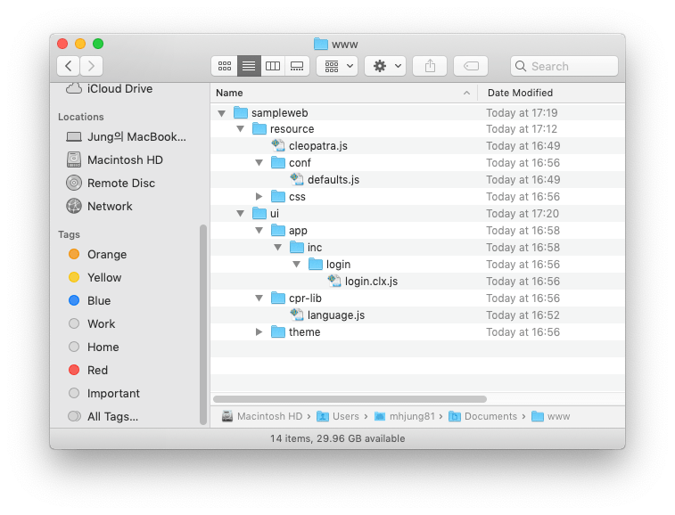 When deploying eXBuilder6 components of the project deployed in the "sampleweb" path as above to the web server, they must be deployed in the sampleweb folder, a subfolder of the same name in the root folder of the web server, as shown in <Figure 8>.